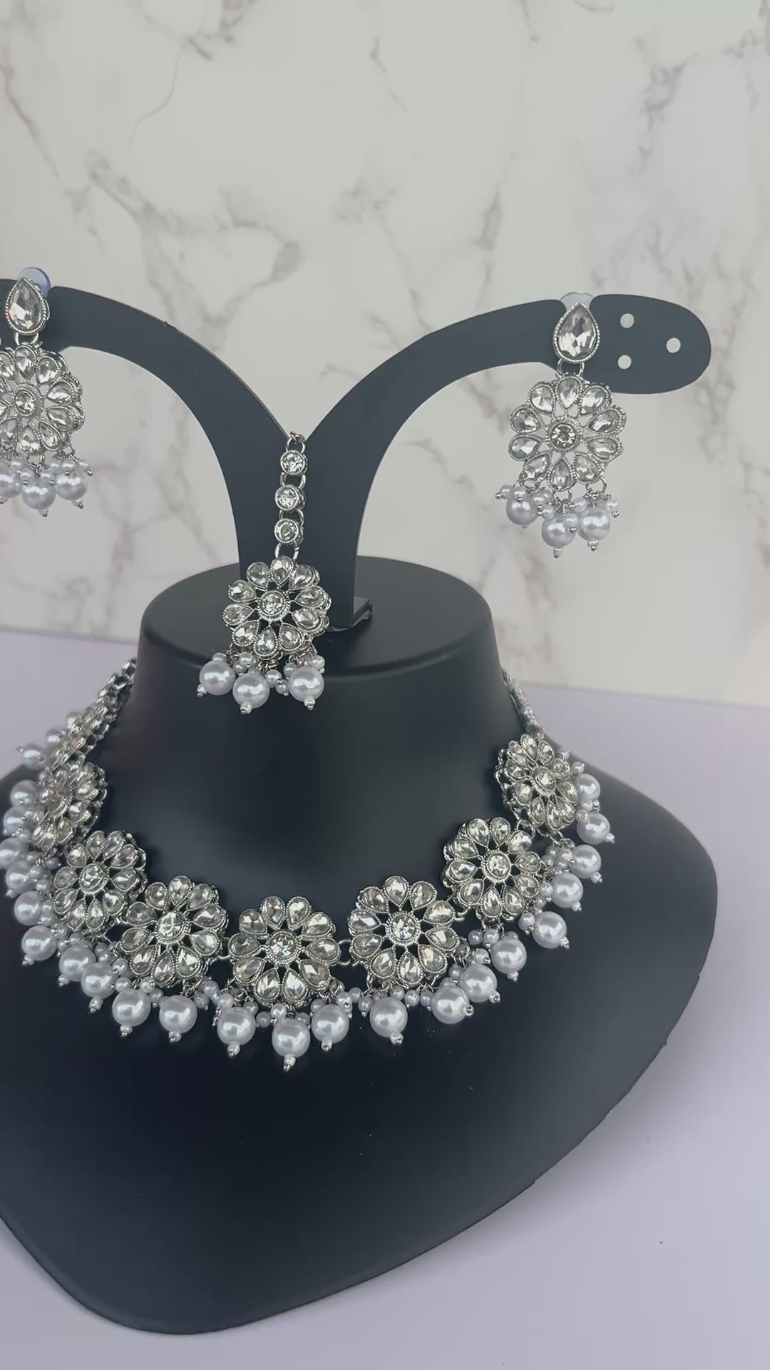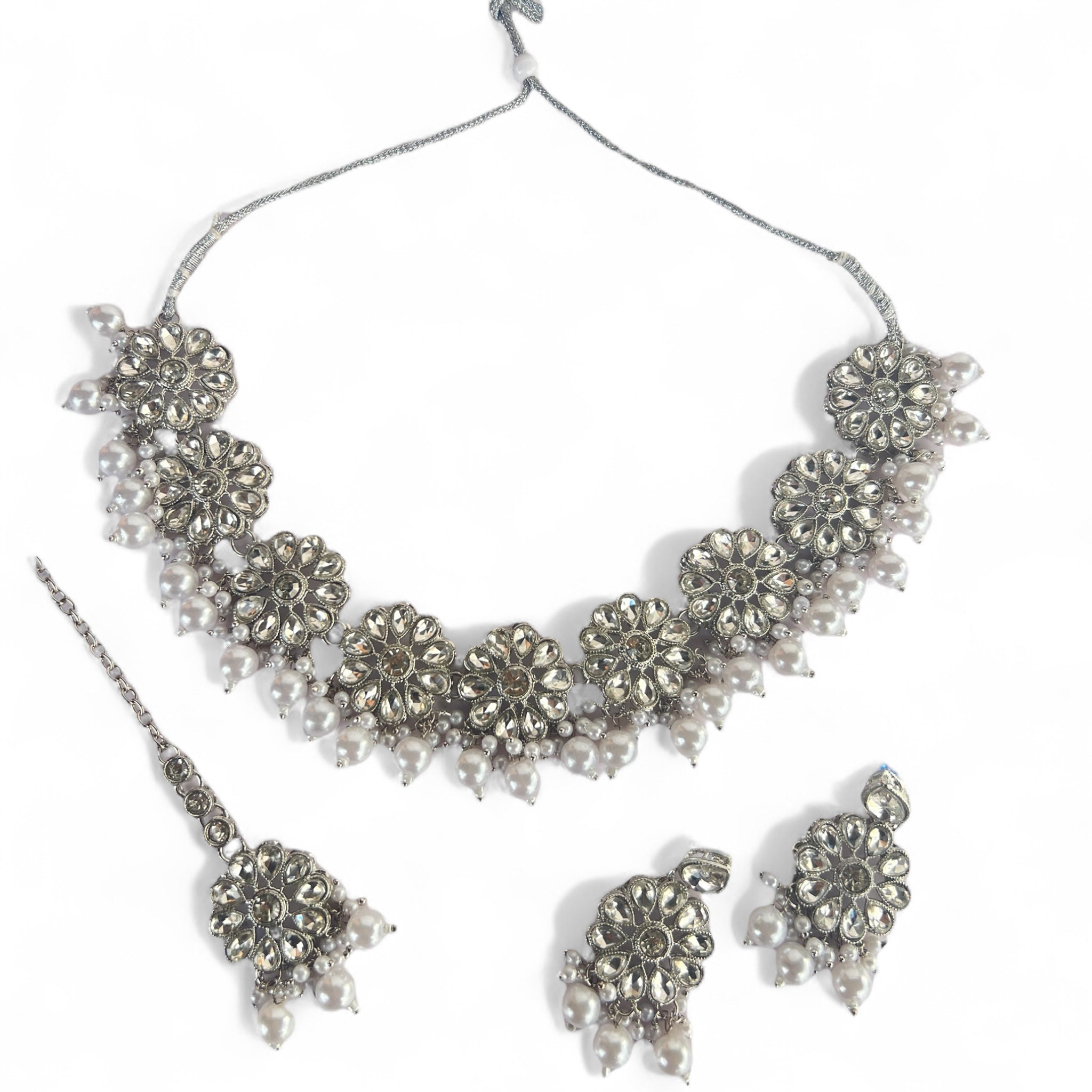Zohra Silver Asian Traditional Necklace Earrings Set