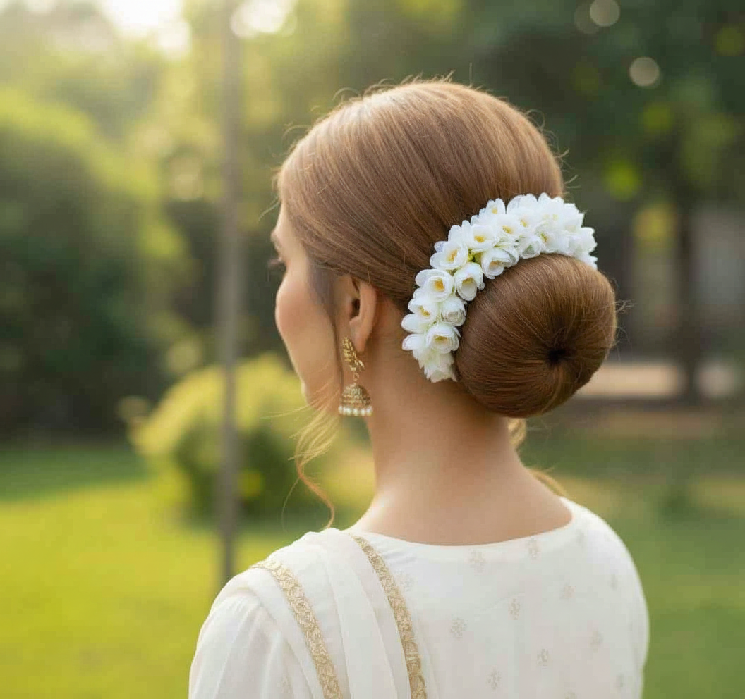 Whether you're attending a wedding or just want to add some flair to your everyday look, our flower hair gajra is the perfect accessory for any occasion. With its intricate design and delicate flowers, it's sure to turn heads wherever you go.