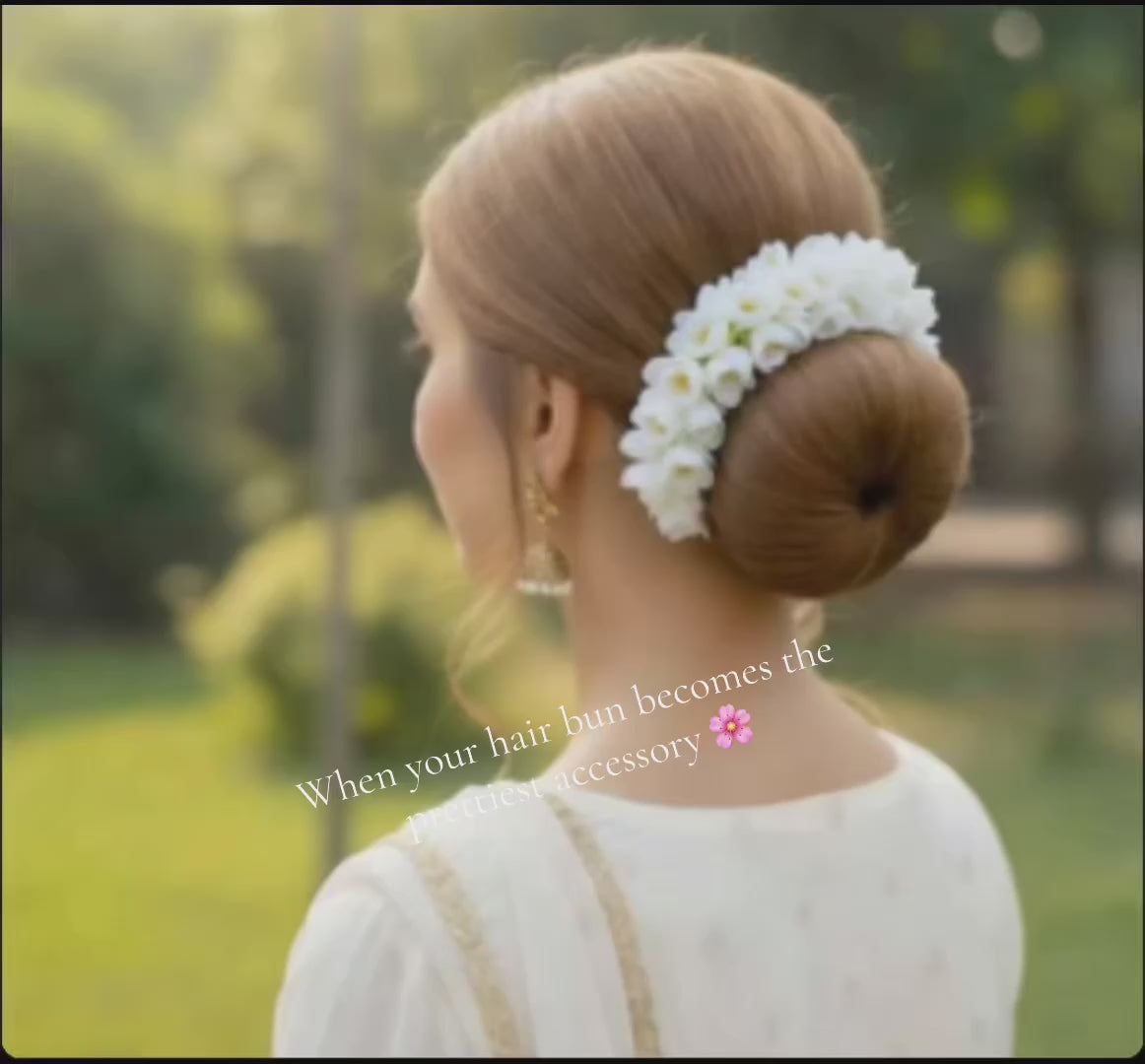 In summary, if you're looking for a unique accessory that will make your hairstyle stand out from the crowd while adding an elegant touch of beauty - then this flower hair gajra in off white is perfect!