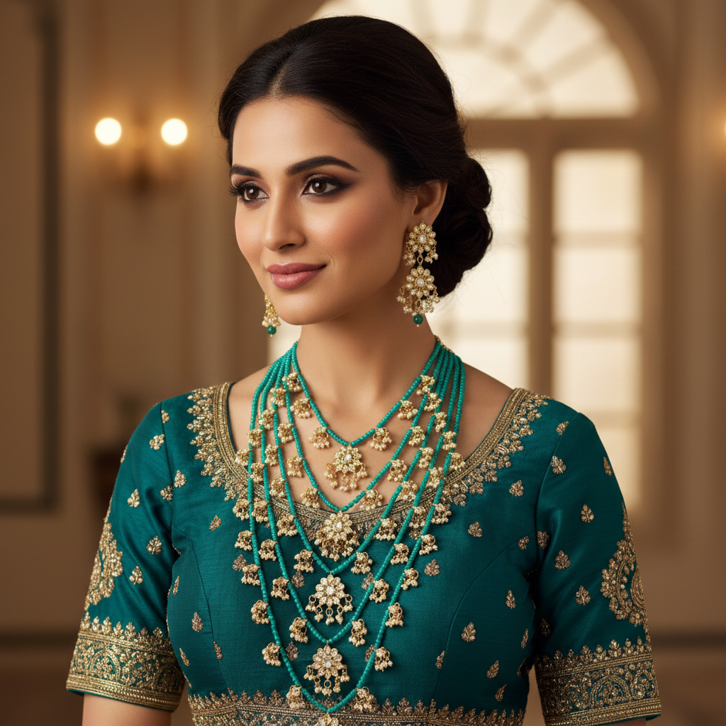 Meheroon Green Long Asian Haar Necklace | Bridal Wedding Jewelry | Traditional Ethnic Indian Wear